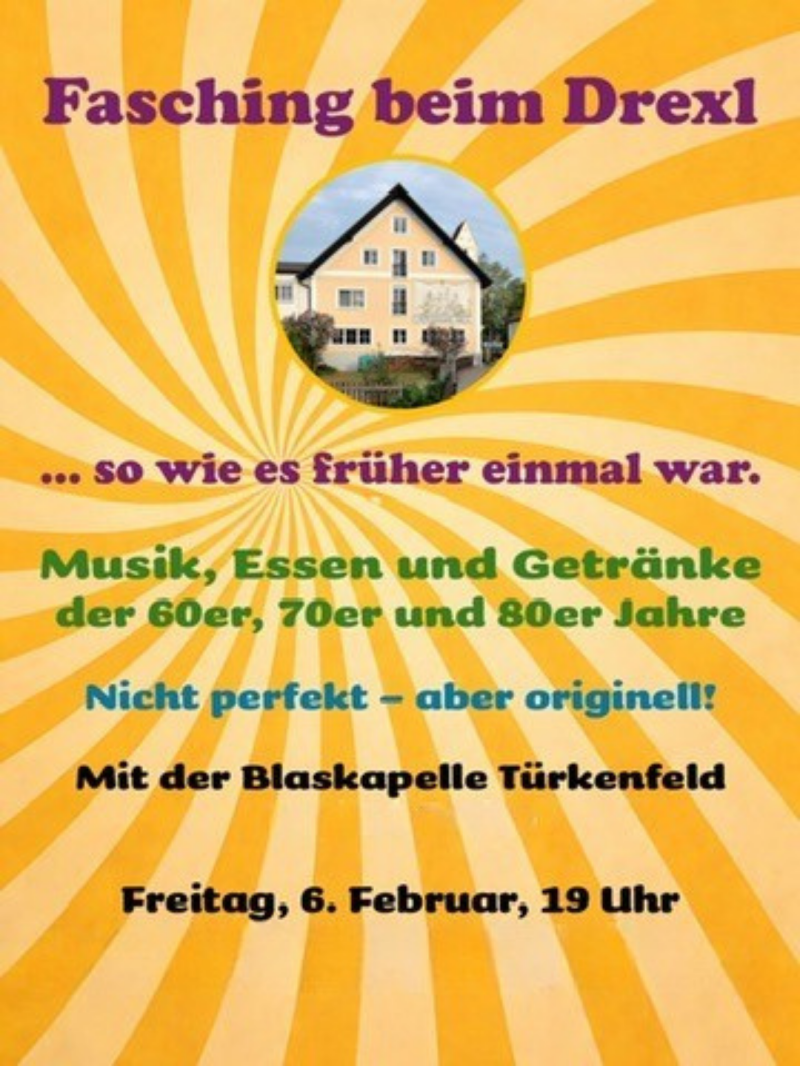 Am Freitag, 6. Februar ab 19 Uhr laden wir herzlich ein zum Fasching beim Drexl.